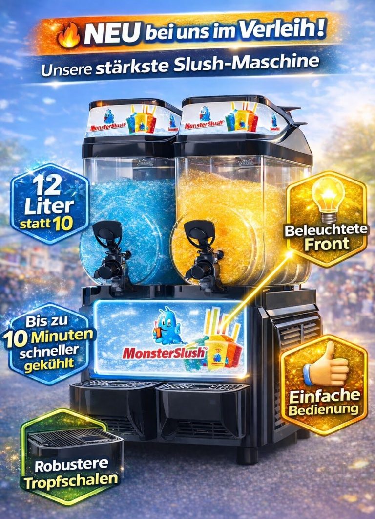 Mieten Sie unsere hochwertigen Slusheismaschinen und Partyzubehör für verschiedene Anlässe. Egal, ob Geburtstag oder Firmenfeier, wir haben das richtige Equipment.